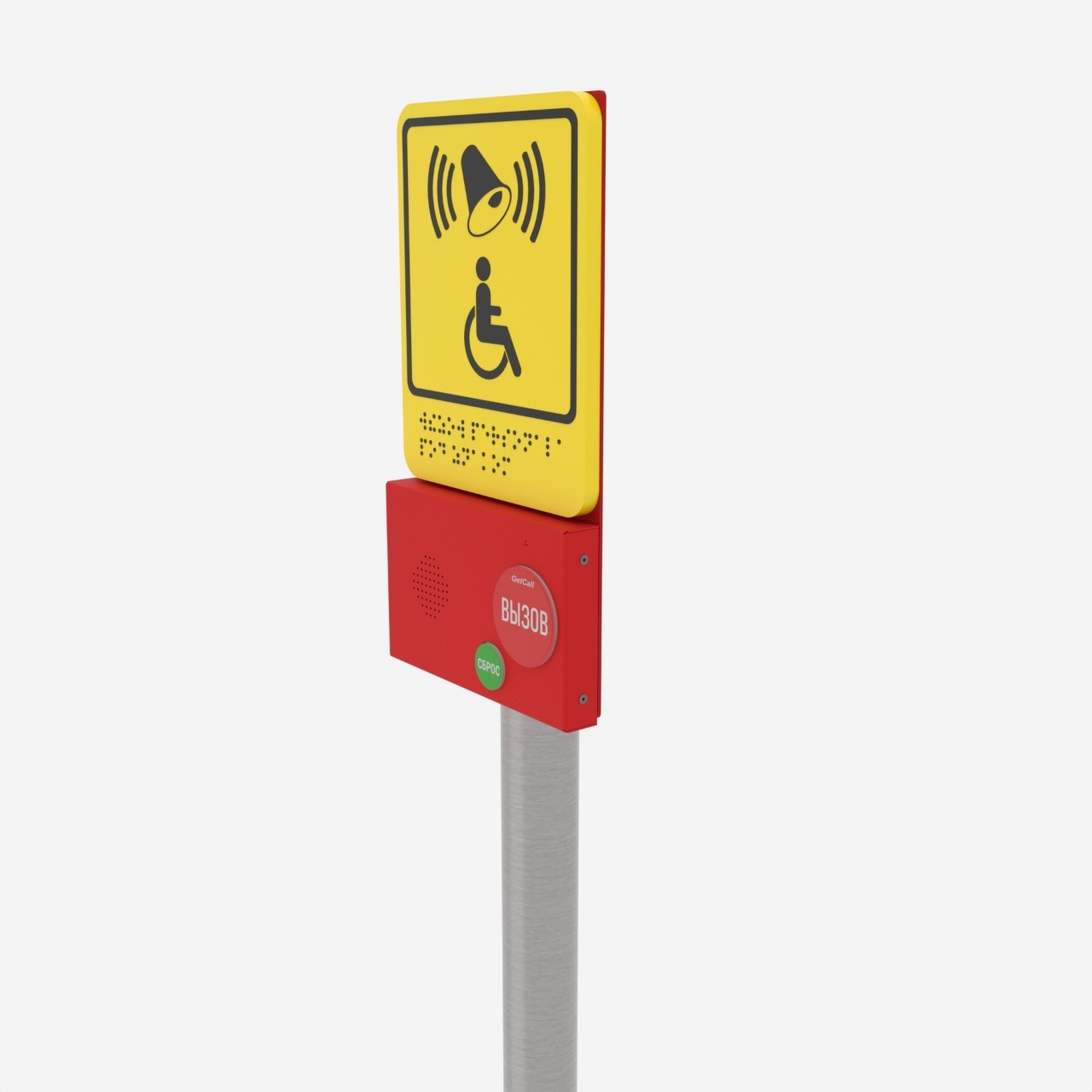 Стойка предназначена для установки кнопок вызова GC-0422M1 и абонентских устройств громкой связи GC-2001B2. Удобная форма стойки позволяет инвалиду-колясочнику беспрепятственно воспользоваться установленным оборудованием.
